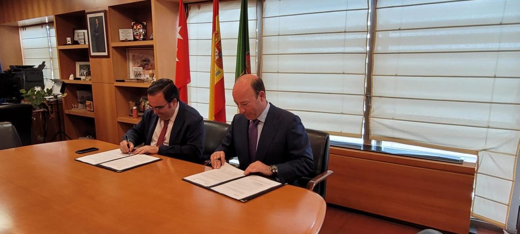 El alcalde de Boadilla del Monte, Javier Úbeda, y el vicepresidente Santander España y director general de Comunicación, Marketing Corporativo y Estudios de Banco Santander, Juan Manuel Cendoya, han firmado la renovación del convenio que de forma anual suscriben ambas entidades para la financiación de varios proyectos en la localidad.