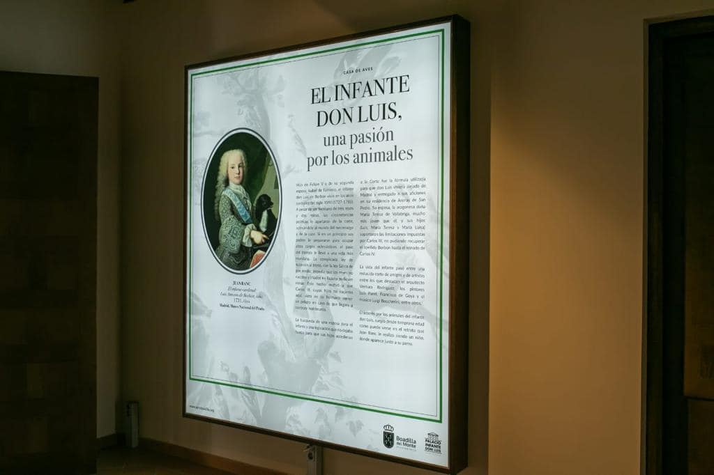 La instalación está especialmente pensada para un público joven que puede, a través de los recursos audiovisuales y los juegos, conocer más, no solo de la relación entre el hombre y la fauna, sino sobre la historia de la Casa de Aves, del Palacio y del propio Infante D. Luis.