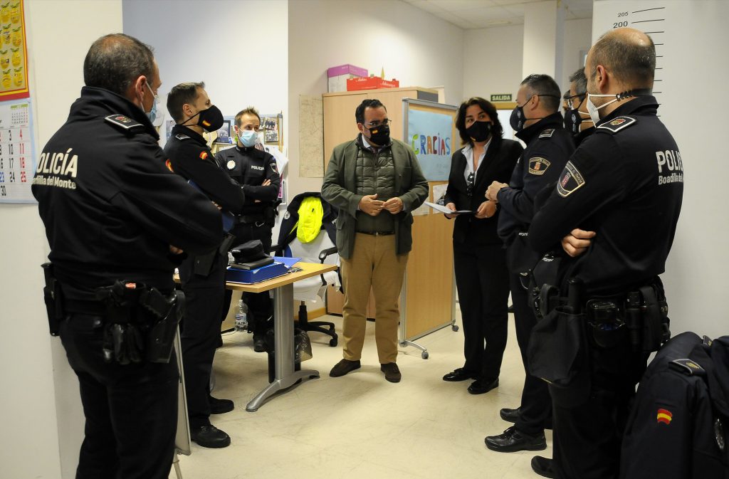 El alcalde de Boadilla del Monte, Javier Úbeda en compañía de  la concejal de Seguridad, Sara de la Varga, ha visitado hoy la Unidad de Agentes Tutores con el fin de conocer las actuaciones llevadas a cabo el pasado año.