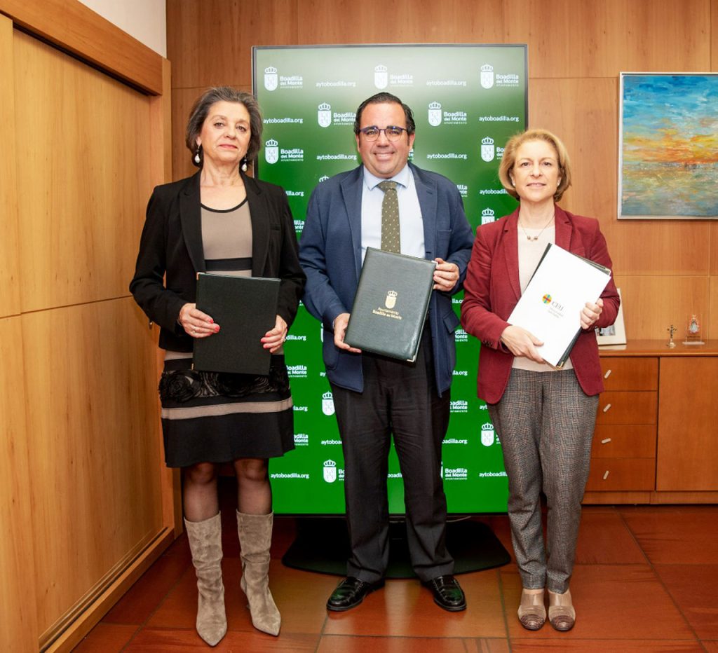 El alcalde de Boadilla, Javier Úbeda, la rectora de la Universidad CEU San Pablo, Rosa Visiedo, y la gerente de la CEU USP, Carmen García de Elías, han firmado este convenio. La Universidad CEU San Pablo va a dar cada curso académico cuatro becas (del 100 % y del 65 % de exención de los honorarios) para cursar estudios de Grado. De esta forma, el talento académico de los jóvenes tendrá su recompensa.
