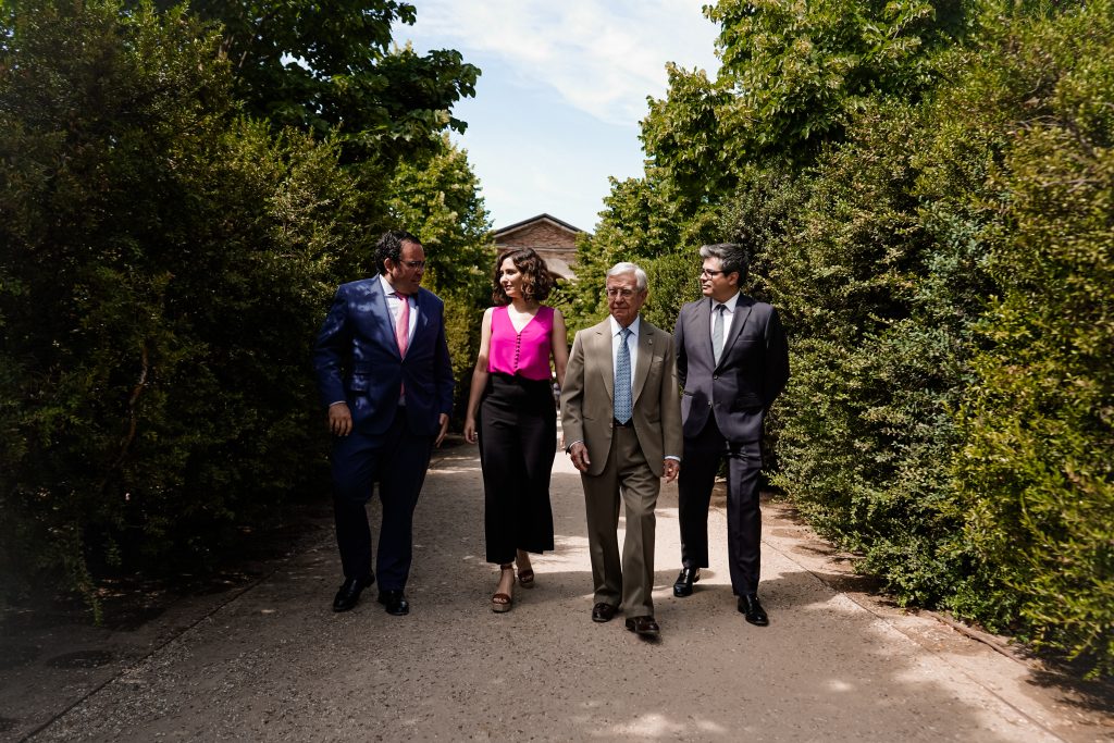 La presidenta de la Comunidad de Madrid, Isabel Díaz Ayuso, ha presentado este jueves en los jardines del Palacio del Infante Don Luis, en Boadilla del Monte, Madrid, pueblo a pueblo, un nuevo proyecto de turismo gastronómico en la región llevado a cabo por la Academia Iberoamericana de Gastronomía y patrocinado por el Gobierno autonómico.