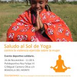 Al día siguiente, 26 de noviembre, se podrá hacer un «Saludo al sol de yoga contra la violencia ejercida sobre la mujer». Será un saludo compartido entre África y España que tendrá lugar a las 11:00 horas en el Polideportivo Rey Felipe VI (C/ Miguel Ángel Cantero Oliva s/n) y en el que, por una aportación solidaria de 2 euros, se recibirá también una clase de yoga de una hora de duración a cargo de Bikram Boadilla.